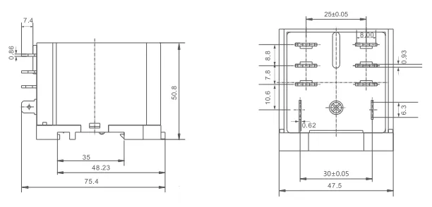 | Between contact and coil | 2500VAC/1min(Leakage current 1mA) |